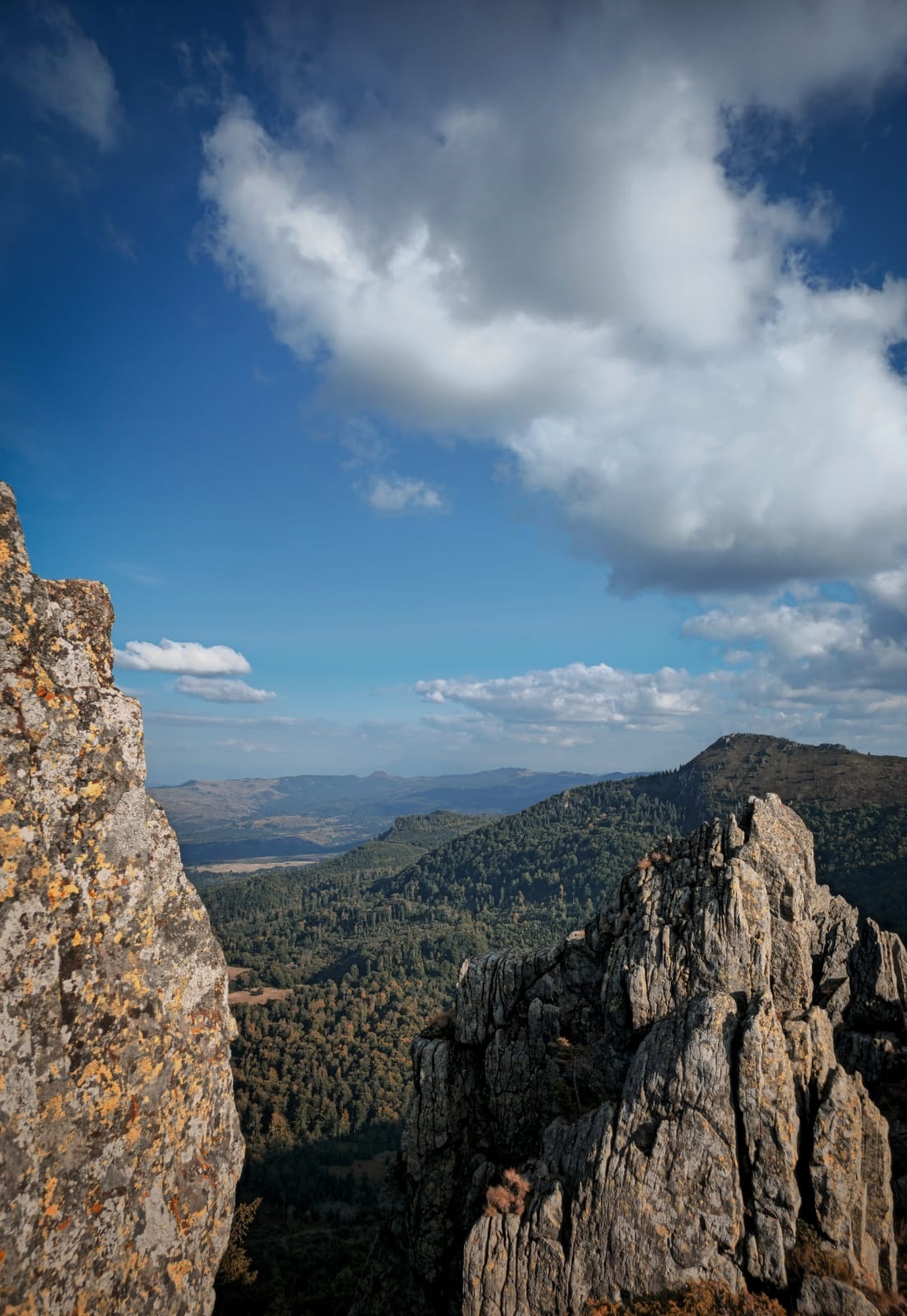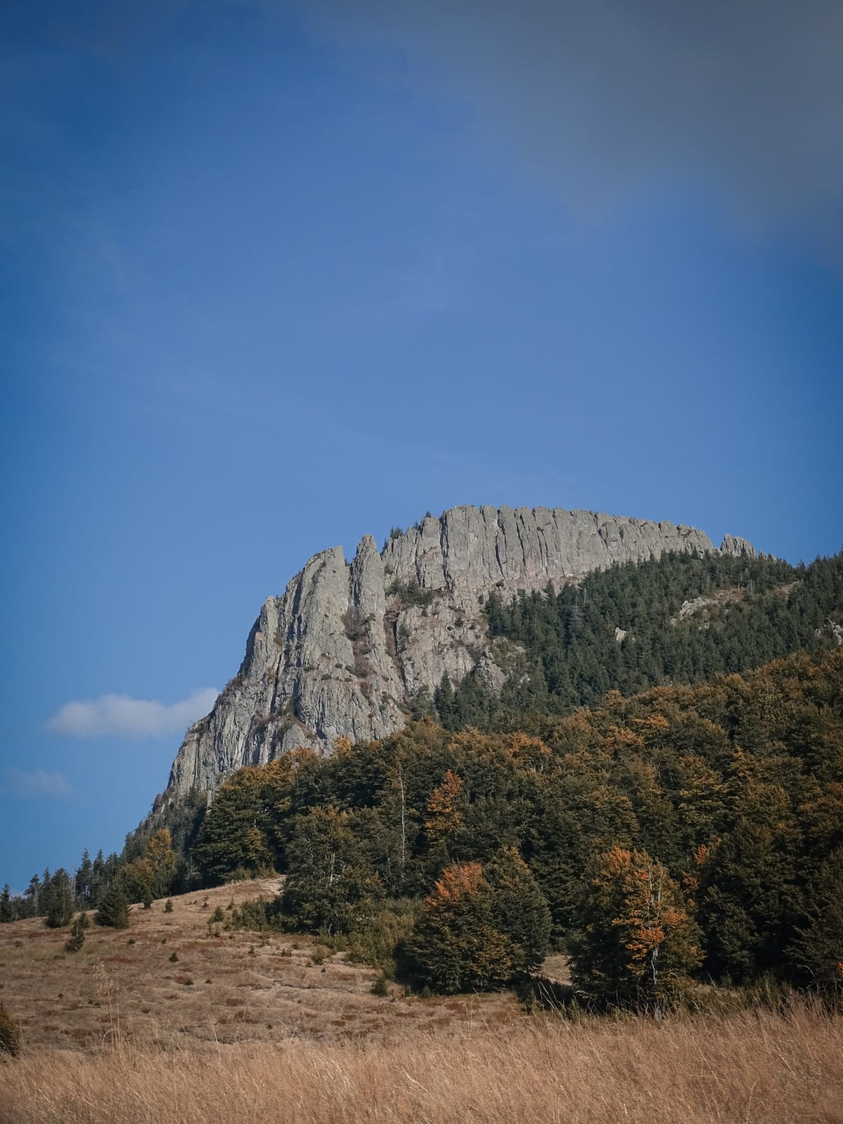 The Ridge, a symbol of the Gutâi Mountains, rises above forests dressed in the warm colors of autumn. The massive rock formation, with sharp and steep shapes, strongly contrasts with the clear sky, creating a landscape of rare beauty. In this image, one can feel the deep silence of nature, untouched by everyday hustle. The rusty colors of the foliage perfectly complete the natural scene, highlighting the season and the Maramureș region’s specific character. The Rooster’s Ridge is an impressive geological formation, but also a place full of energy, where time seems to stand still. This photograph captures a moment in which nature reveals its simplicity and grandeur, offering the viewer a calm yet profound visual experience.