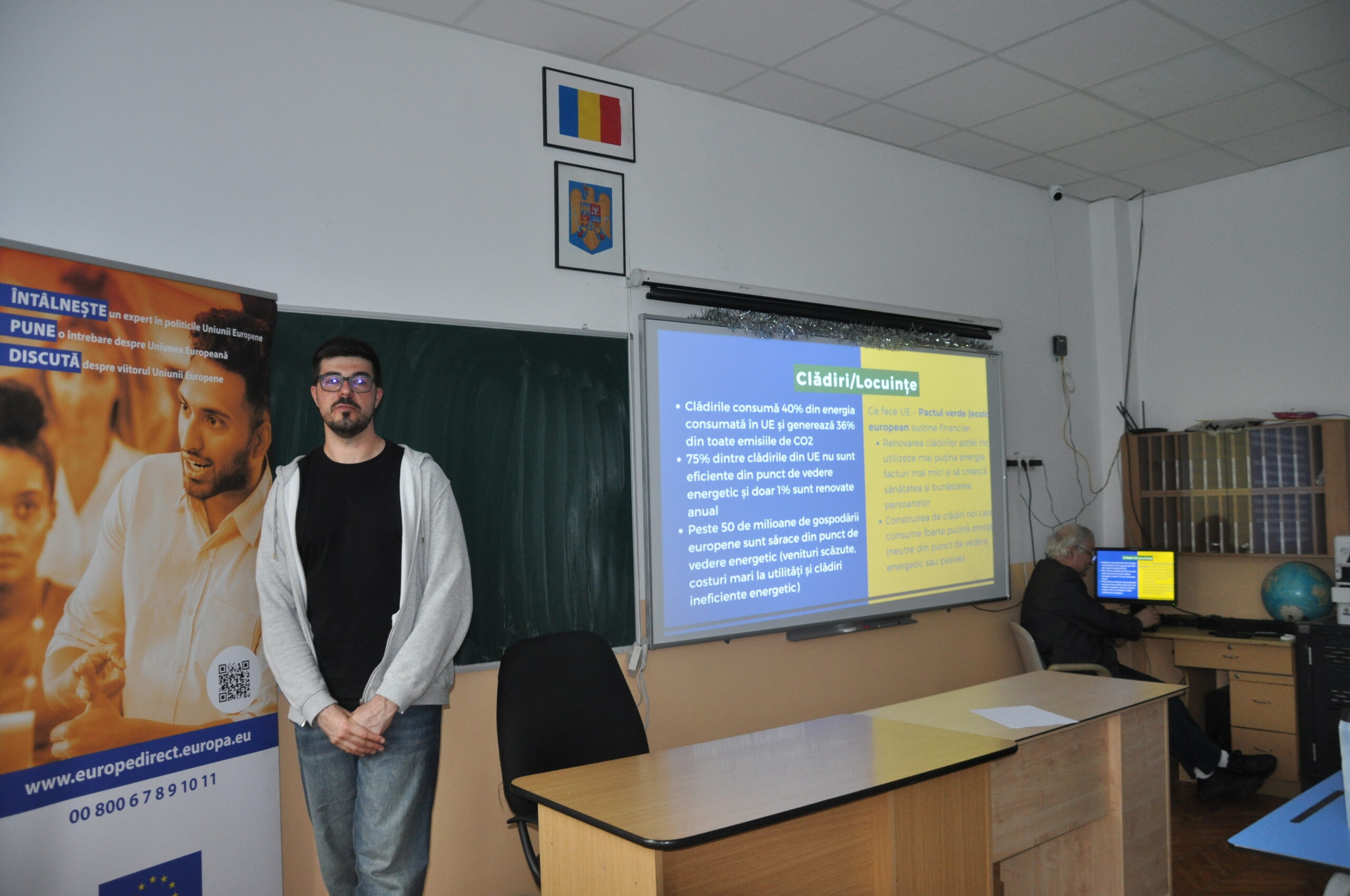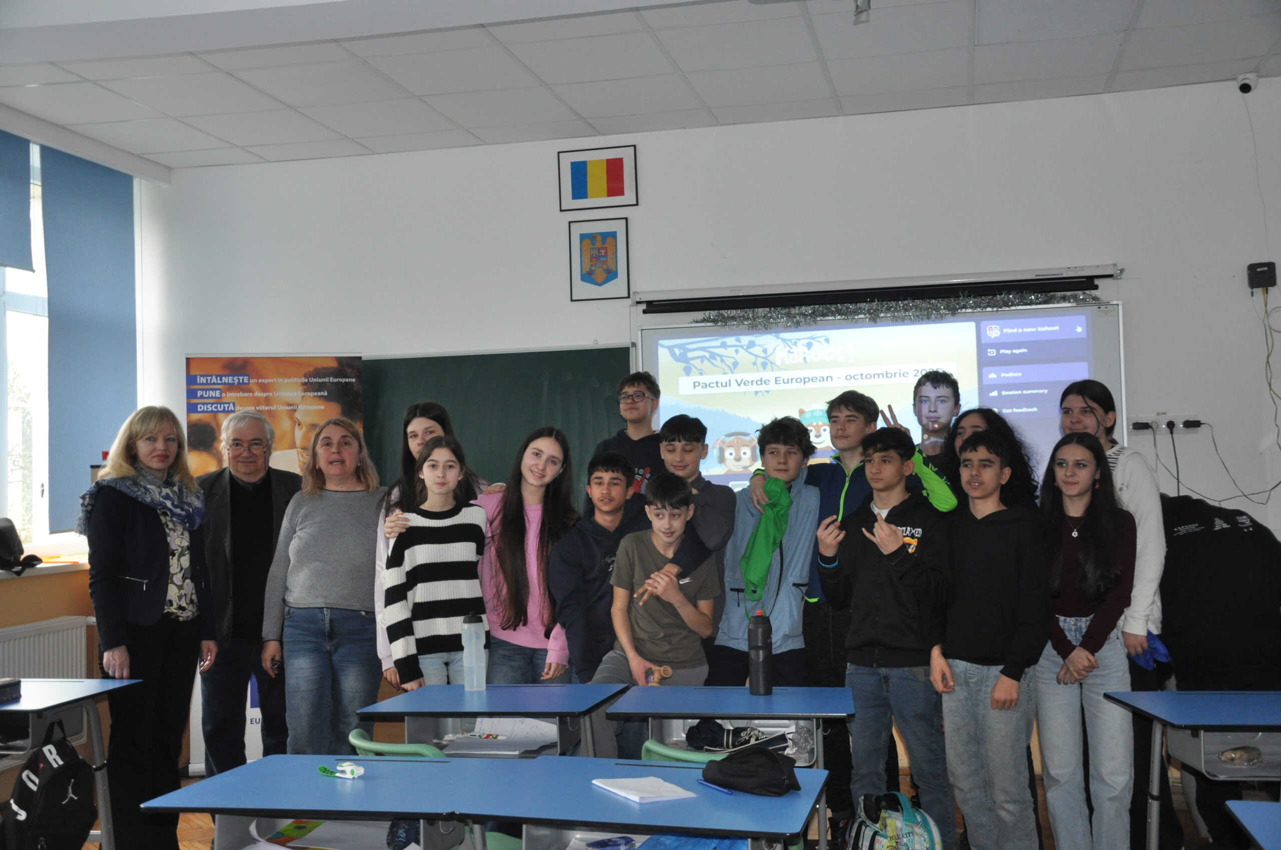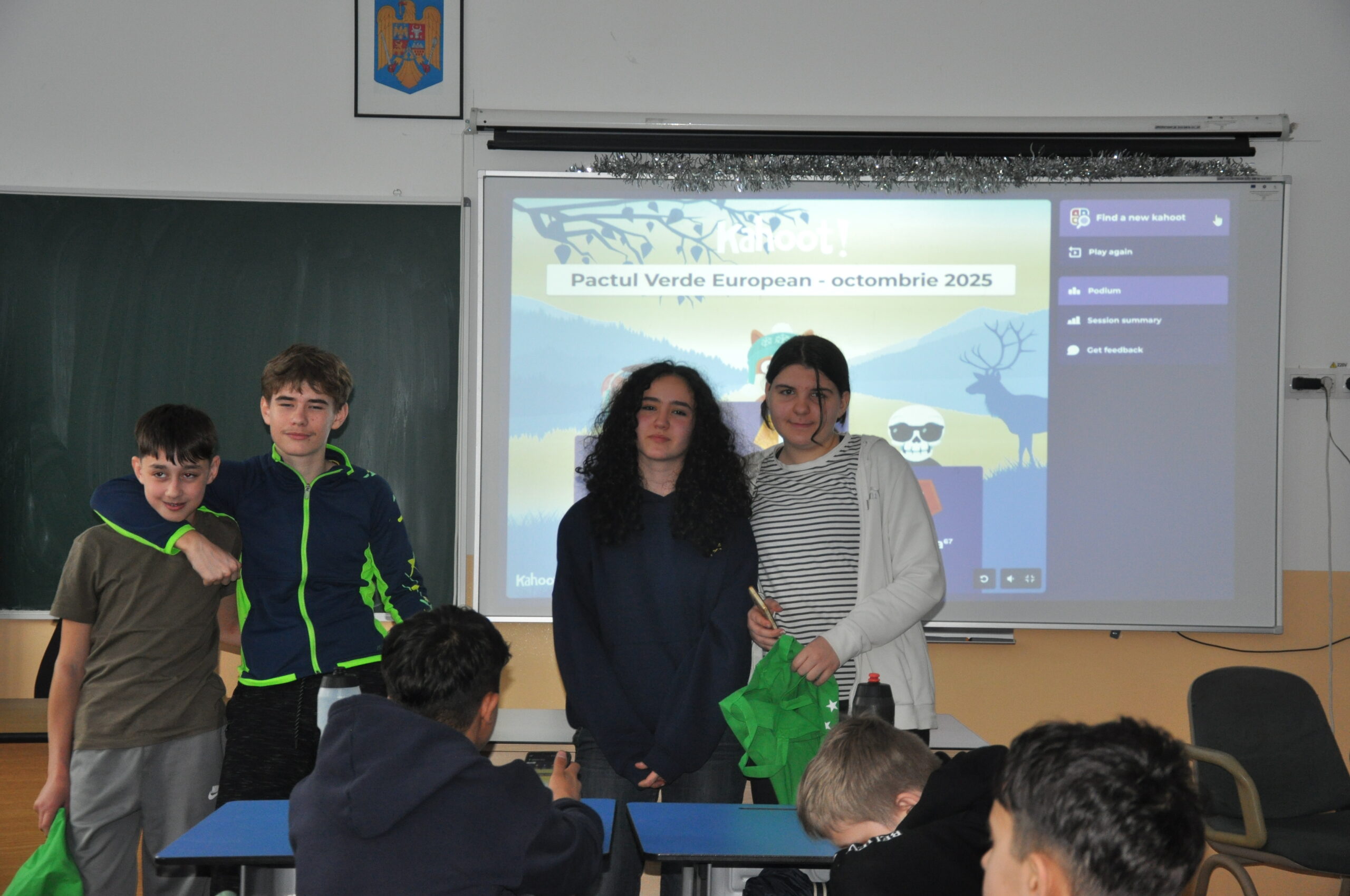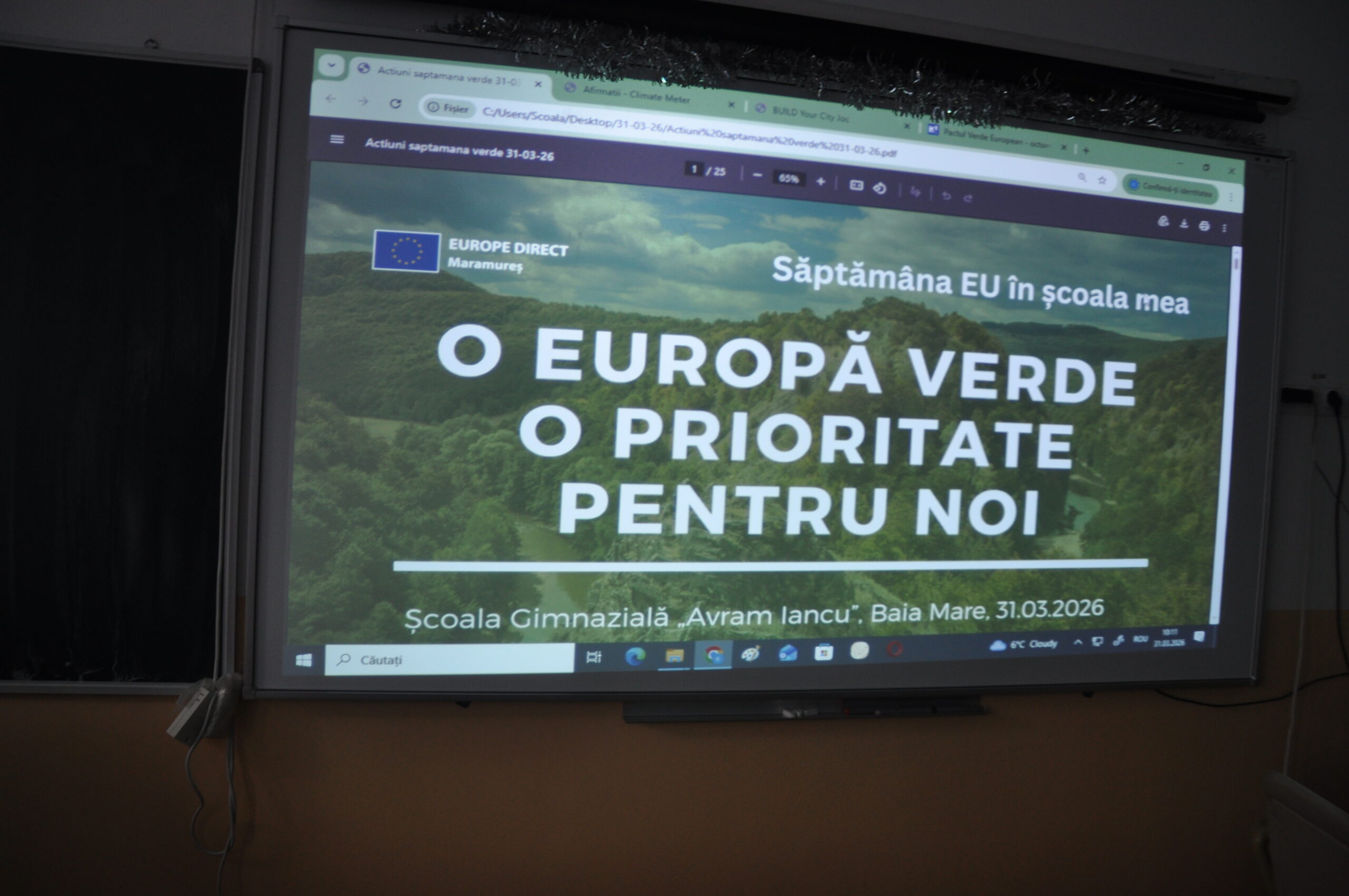 Azi, 31 Martie 2026, am fost alături de elevii clasei a 7-a A de la Școala Gimnazială Avram Iancu din Baia Mare și am marcat printr-o prezentare interactivă și jocuri imaginative săptămâna verde – cu informații legate de Pactul Verde European și transpunerea dezideratelor europene în acțiuni personale de atenuare a impactului negativ al schimbărilor climatice.